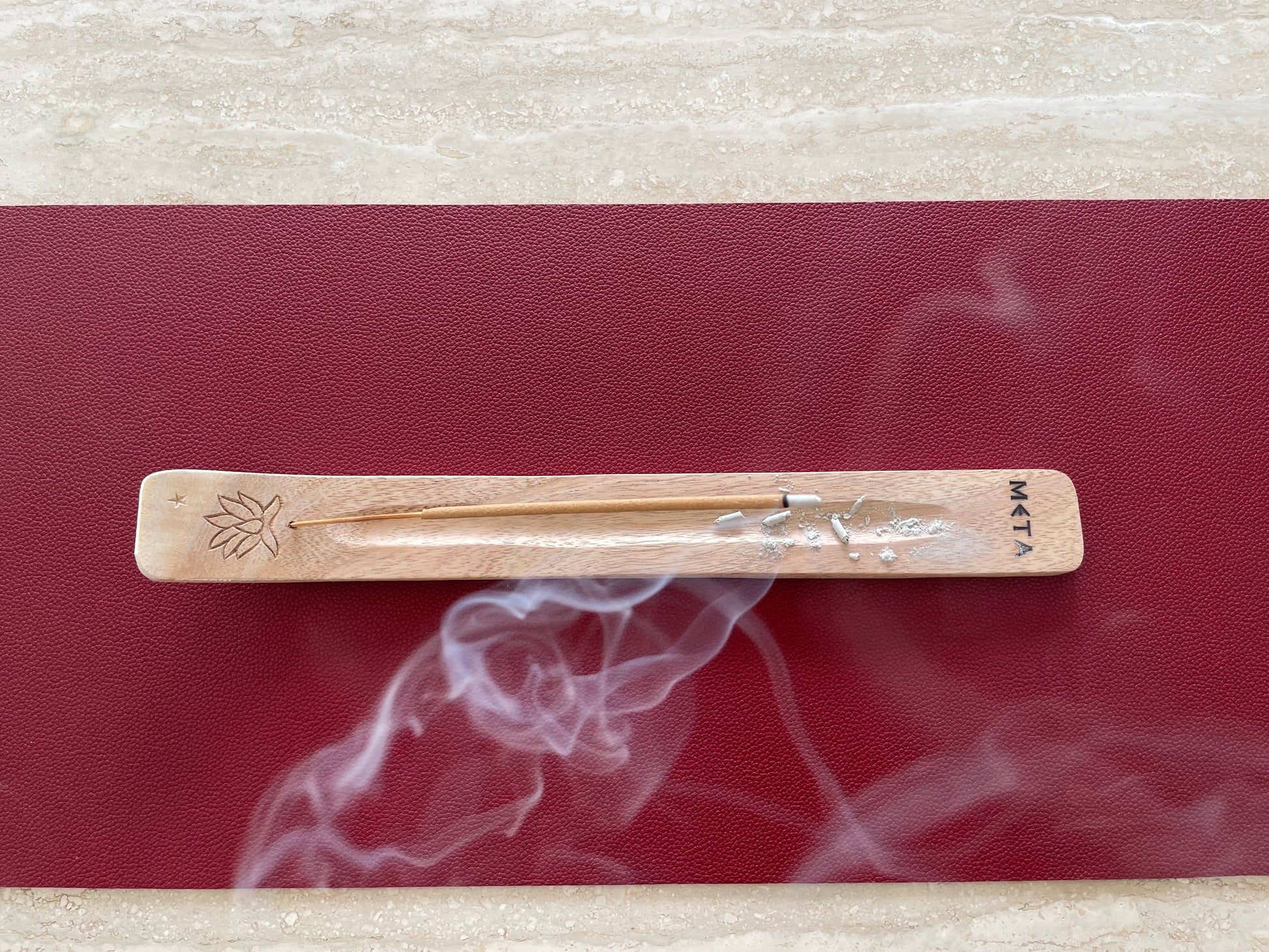The incense wood base offers a refined, serene platform, enhancing your space with elegance while catching ash and promoting a calming atmosphere.